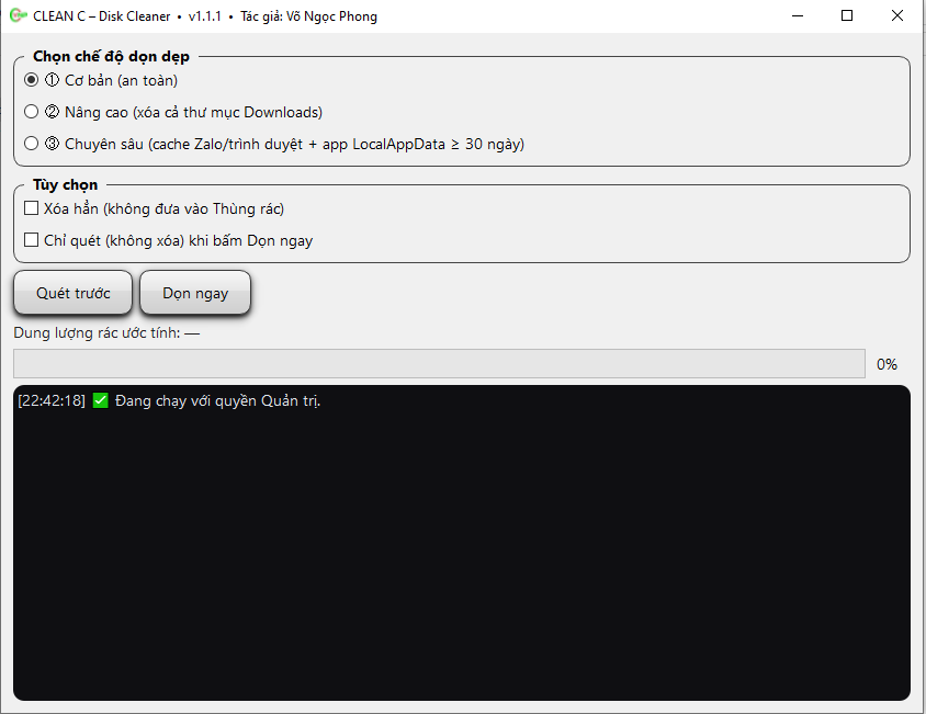 | 📊 Thống kê dung lượng | Hiển thị dung lượng trước và sau khi dọn, kèm tổng dung lượng giải phóng. |