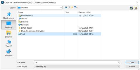 B2: Chọn đúng tên file txt vừa thiết lập