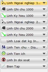 – Bộ công cụ biên vẽ level thửa đất, Bộ công cụ biên vẽ level nhà, Bộ công cụ biên vẽ level giao thông, Bộ công cụ biên level thuỷ hệ, Bộ công cụ vẽ địa giới, Bộ công cụ vẽ lớp Quy hoạch, Bộ công cụ vẽ kí hiệu KT-XH.