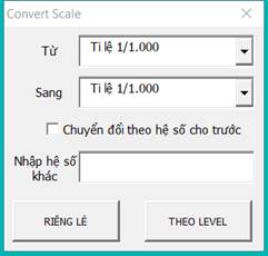 + Tại dòng đầu tiên ta chọn tỷ lệ gốc của đối tượng đang chọn và chọn tỷ lệ cần chuyển sang tại dòng thứ 2 VD: chuyển đổi cell từ tỷ lệ 1000 sang tỷ lệ 5000