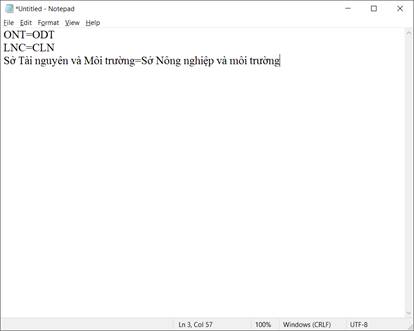 B1: Tạo 1 file chứa các text cần thay thế theo cấu hình Text cũ cần thay thế=Text mới sẽ thay thế: